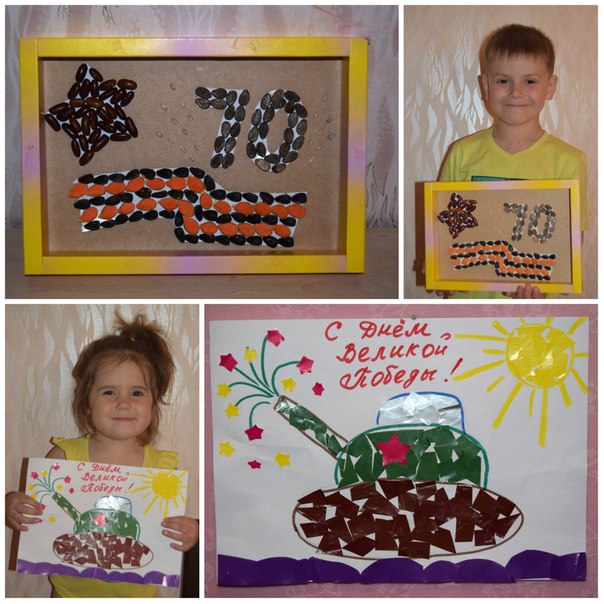 Завтра 9 мая вся страна отмечает День Великой Победы. Наша семья не исключение. По доброй семейной традиции мы пойдем на Парад Победы, поздравим Ветеранов, посетим мемориальный комплекс "Родина-мать", посмотрим праздничный концерт, попробуем солдатскую кашу... А еще у нас будет большой семейный ужин с бабушками и дедушками. В честь 70-ти летия Великой Победы мы вместе с детишками смастерили поделки. В знак благодарности и уважения нашим дедам!