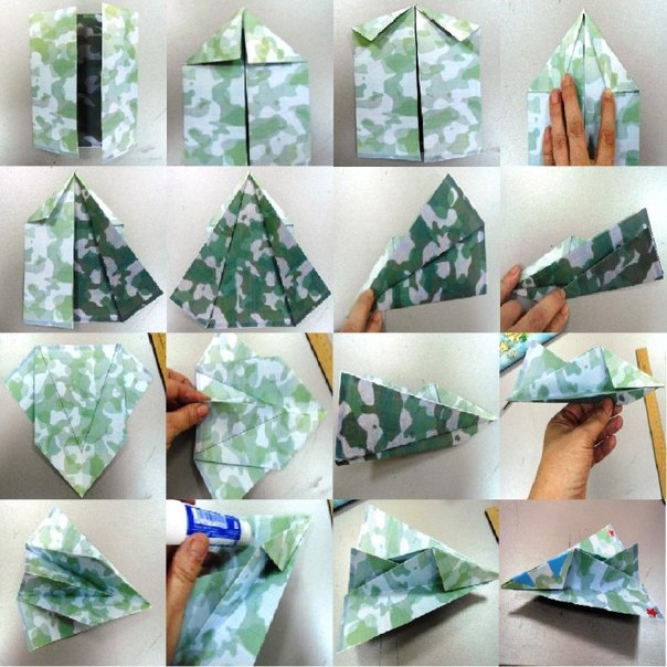 Для выполнения фигур самолетов нам понадобится цветная бумага, клей и украшения для него: Лист формата А4 складываем по ширине так, чтобы на его середине две его части соприкасались между собой. Загибаем верхние углы как при складывании обычного бумажного самолета. Теперь отворачиваем углы и загибаем до половины линии прежнего изгиба. Загибаем углы уже по первой линии. Аккуратно, но как можно шире внизу разгибаем крылья самолета. Складываем самолет по центру пополам. Делаем изгибы для хвоста и помечаем их карандашом. Раскрываем самолет и выворачиваем вверх хвост самолета по центральной линии. Расправляем крылья горизонтально и украшаем звездами и другими элементами из бумаги. Чтобы самолет не раскрывался, можно промазать стороны клеем или закрепить степлером посередине, зацепив за тесьму для подвешивания.