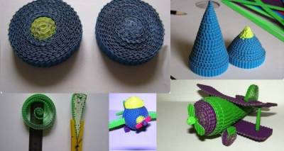 Скручиваем из картона конус и скрепляем клеем. Из небольших полос создаем 2 колеса. Делаем остальные детали самолета из полос картона. Для хвоста из картона можно сделать деталь треугольной формы. Соединяем все части самолета и приклеиваем пропеллер спереди.
