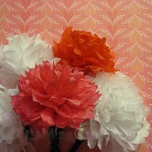 Для изготовления мы используем: крепированную бумагу Хатбер, её можно приобрести в канцелярском магазине, ножницы и проволока, в нашем случае синельная проволока. План работы: 1. Разрежьте бумагу на одинаковые кусочки прямоугольной формы. Для одного цветка вам понадобится 6 таких кусочков. Сложите их вместе стопкой. 2. Теперь сложите все листочки вместе гармошкой. 3. Скрепите их посередине при помощи синельной проволоки. См. фото ниже. 4. Заострите концы, обрезав их ножницами. 5. Теперь вам осталось "распушить" вашу гвоздику из бумаги. Для этого вам надо последовательно поднять каждый слой бумаги вверх и к середине. 6. Готово! ![]()