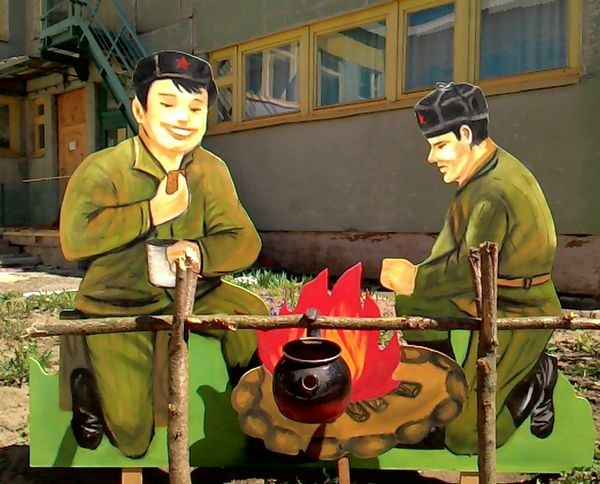 Кто может сделать лучше - делайте!!!!!!!!!!!В других городах детские сады участвуют в конкурсах поделок на 9 мая и ничего. Но в нашем Ядрине лучше ничего не делать. Хотя мы для детей старались, а не для вас.. И дети с удовольствием рассматривали фигуры солдат И они понимали что это солдаты , а никакие нибудь страшилки !!!!!!!!!!!! Вы еще манекены в " детском мире" сфоткайте и обсудите как страшно заходить в магазин. И не "дядьки" и не " это"!!!!!!! а композиция " солдаты на привале" к празднику 9 мая.