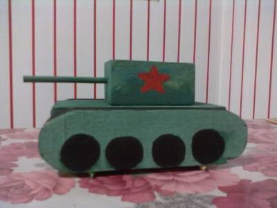 Наша первая поделка в садик к 9 мая!!! Танк Т-34. Папа сделал, мама покрасила=)))